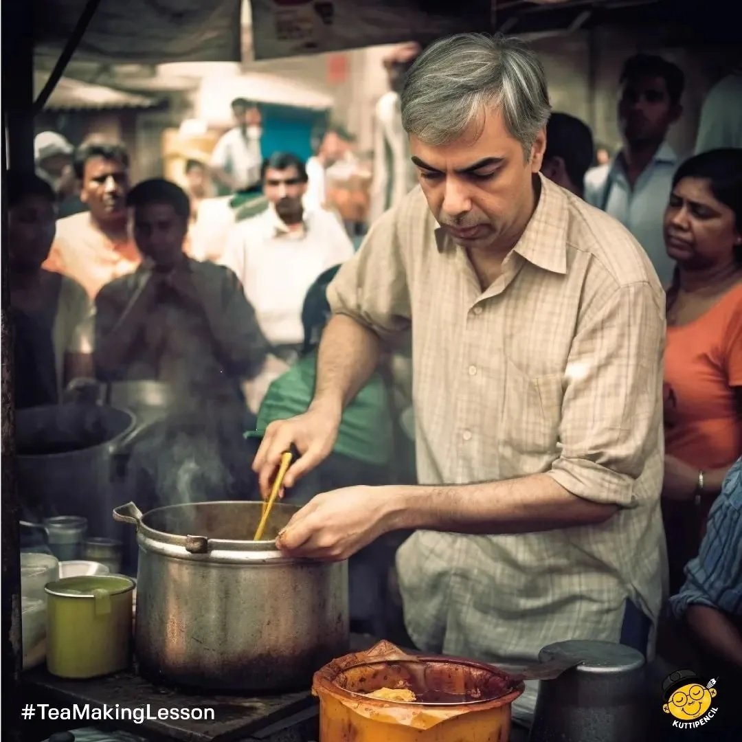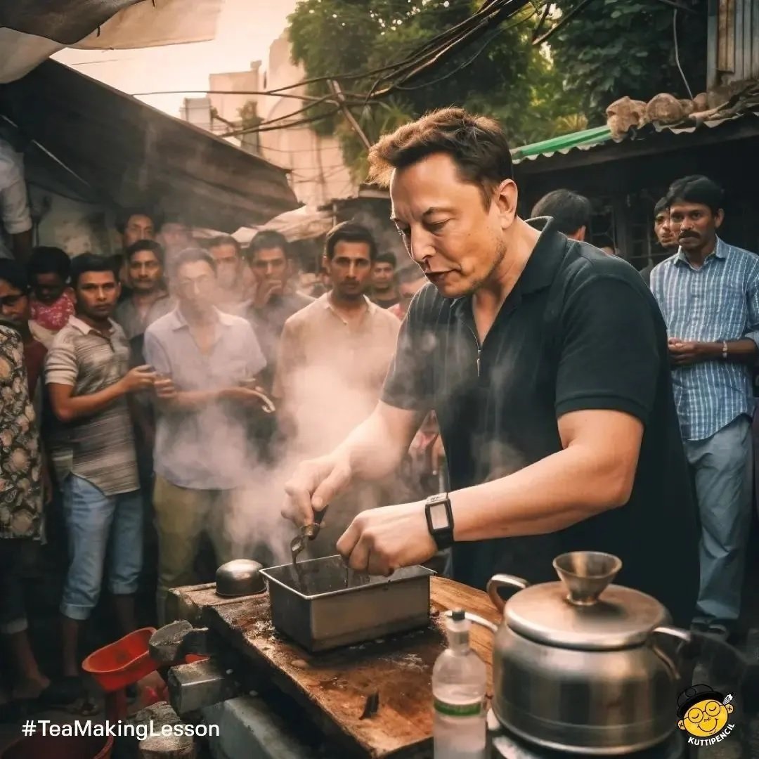 ટ્વિટરના સીઈઓ એલોન મસ્ક બ્લેક ટી-શર્ટમાં ચા બનાવતા જોઈ શકાય છે, જ્યારે ડઝનેક લોકો તેમને ચા બનાવતા જોઈ રહ્યા છે.
