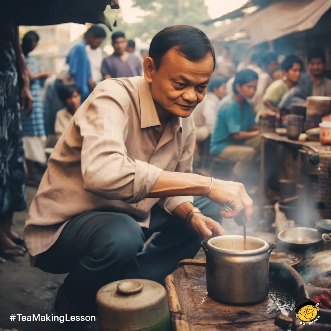 અલીબાબાના સહ-સ્થાપક જેક મા જમીન પર બેસીને ચા બનાવતા જોઈ શકાય છે.