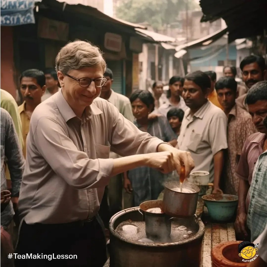 માઈક્રોસોફ્ટના કો-ફાઉન્ડર બિલ ગેટ્સ રસ્તાના કિનારે ચા વેચતા બતાવવામાં આવ્યા છે.