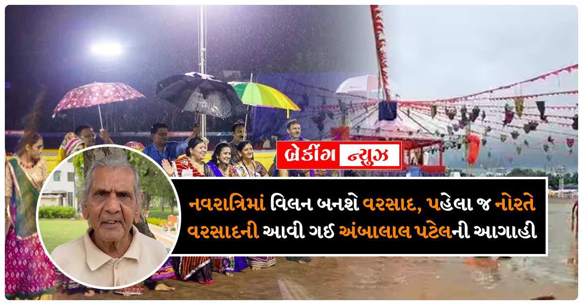 સપ્ટેમ્બર મહિનો ગુજરાત માટે ધડાકો હતો. સપ્ટેમ્બરના મધ્યમાં વરસાદ પડ્યો અને પૂર આવ્યું. હવે લોકો નવરાત્રીની ચિંતા કરવા લાગ્યા છે. ખેલૈયાઓ નવરાત્રિની તૈયારી કરી રહ્યા છે, પરંતુ નવરાત્રિ દરમિયાન વરસાદ પડશે કે નહીં તે અંગે મૂંઝવણ છે. હવે નવરાત્રીને લઈને હવામાનશાસ્ત્રી અંબાલાલ પટેલની આગાહી આવી ગઈ છે. નવરાત્રિ પહેલા ગુજરાતમાં ઘણી જગ્યાએ વરસાદની સંભાવના છે. 7 ઓક્ટોબર પછી બંગાળ-અરબી સમુદ્રમાં વરસાદી સિસ્ટમ બનશે. 7 ઓક્ટોબર પછી રાજ્યના કેટલાક ભાગોમાં હળવા વરસાદની શક્યતા છે. દશેરા દરમિયાન પણ વરસાદની અપેક્ષા છે.