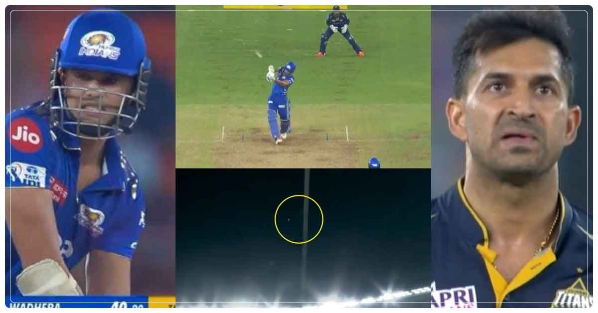 નંબર-8 પર બેટિંગ કરવા આવેલા અર્જુન (અર્જુન તેંડુલકર)એ પોતાની ઇનિંગ્સની શરૂઆત ધીમી કરી હતી પરંતુ મેચની છેલ્લી ઓવરમાં મોહિત શર્માના બાઉન્સર બોલ સામે તેણે ડીપ સ્ક્વેર લેગની દિશામાં સ્કાય-હાઇ સિક્સર ફટકારી હતી. તેના શોટનો વીડિયો સોશિયલ મીડિયા પર વાયરલ થઈ રહ્યો છે. તમને જણાવી દઈએ કે આ પહેલા અર્જુને આઈપીએલમાં 2 વિકેટ પણ લીધી છે. જ્યારે તેને ગુજરાત સામે રમાયેલી મેચમાં એક વિકેટ મળી હતી. તેણે 2 ઓવરના સ્પેલમાં 9 રન આપીને રિદ્ધિમાન સાહાની વિકેટ પોતાના નામે કરી હતી.