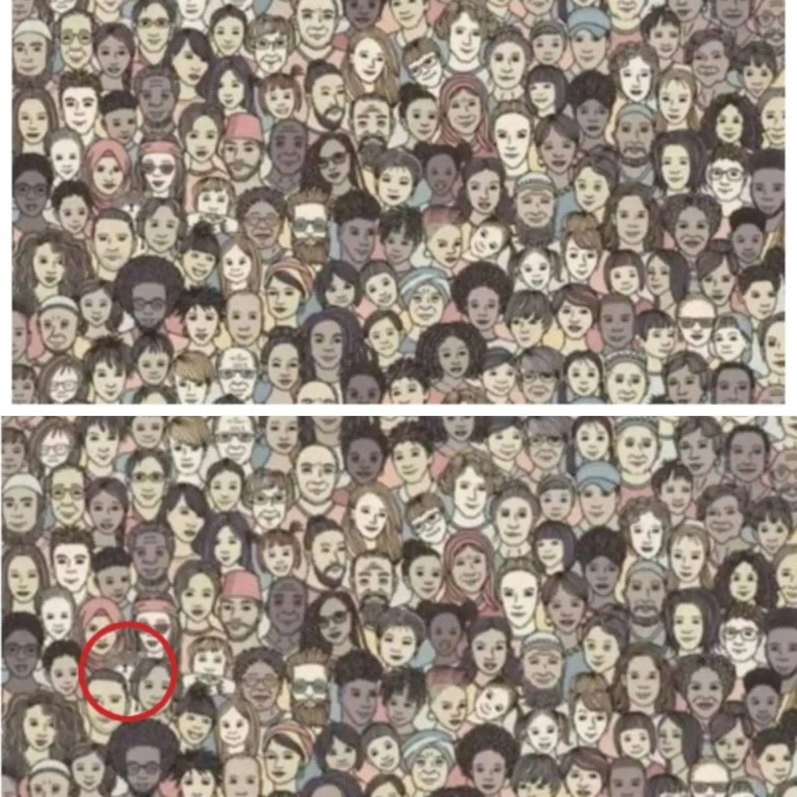 ચહેરાના દરિયામાં ક્યાંક એક એકલી બિલાડી બેઠી છે, જેને શક્ય તેટલા ઓછા સમયમાં તેને શોધવાનો પડકાર મળ્યો છે . જો કે, પડકાર બિલકુલ સરળ નથી. ગીધ જેવી તીક્ષ્ણ આંખ ધરાવનાર પણ સખત મહેનત પછી જ તે બિલાડીને બરાબર જોઈ શકશે અને ઓળખી શકશે, પછી માણસો તેમના માથાના સહારે છુપાવવાનો પ્રયાસ કરી રહ્યા છે. અને સંપૂર્ણપણે તેમનામાં સમાઈ જાય છે. તસવીરમાં દેખાતો દરેક ચહેરો ખુશ અને સંતુષ્ટ દેખાય છે. ચિત્ર પણ એવું છે કે જેમાં દરેકનો કલર ટોન એકસરખો હોય છે. એટલે કે ચિત્ર જૂના સમયની અનુભૂતિ આપી રહ્યું છે. આ જ રંગની જાળમાં એક બિલાડી પણ છે, જેના કારણે બિલાડીને જોવી લગભગ અશક્ય બની જાય છે. જો કે, ત્યાં એક સંકેત છે કે બિલાડીને જોવા માટે ચિત્રમાં થોડું નીચું અને ડાબી બાજુ જોવું પડશે. ડાર્ક સનગ્લાસ પહેરેલી સ્ત્રીએ ધ્યાન આપવું પડશે.