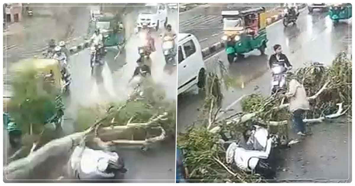 जोधपुर में चलती स्कूटी पर गिरा पेड़, 😱