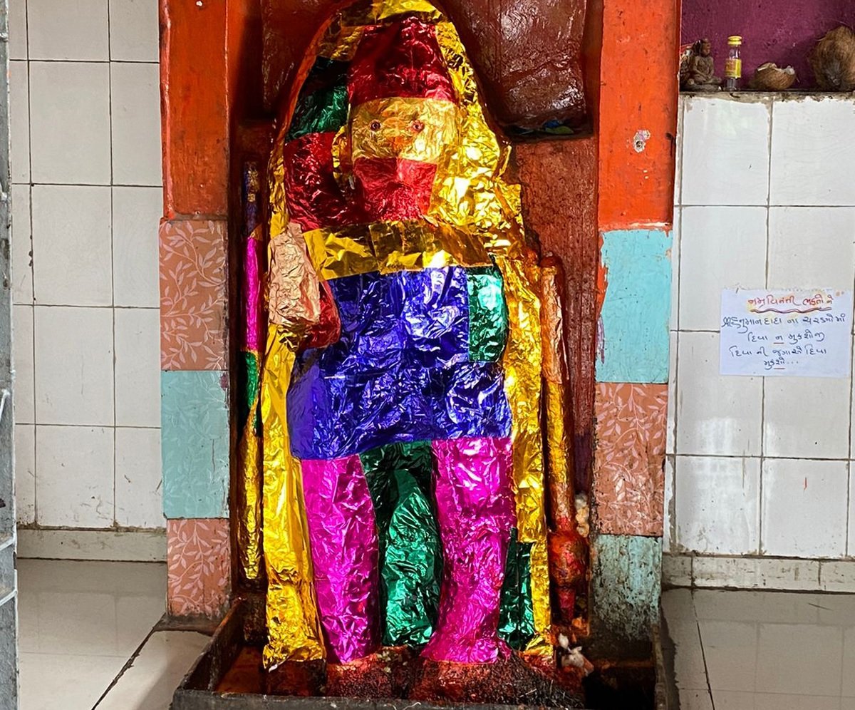 મૂર્તિની બીજી બાજુ રંગીન કાગળ ચોંટાડવામાં આવ્યા છે. એવો દાવો કરવામાં આવે છે કે સમગ્ર ગુજરાતમાં અનાજ કે અનાજમાંથી બનેલી આ એકમાત્ર મૂર્તિ છે જે 200 વર્ષ પછી પણ અકબંધ છે.