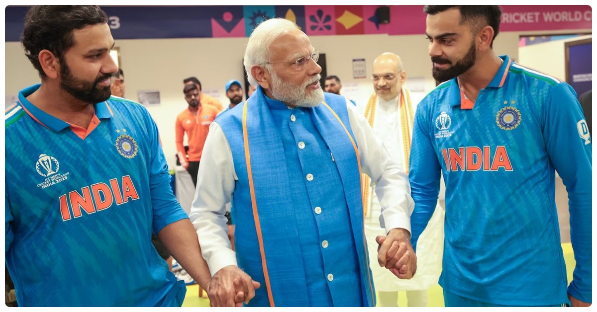 વર્લ્ડ કપ ફાઇનલમાં ભારતની હાર બાદ ભારતના વડાપ્રધાન નરેન્દ્ર મોદી ભારતીય ડ્રેસિંગ રૂમમાં ગયા અને તમામ ખેલાડીઓને પ્રોત્સાહિત કર્યા. મોહમ્મદ શમીને વડાપ્રધાન નરેન્દ્ર મોદીએ ગળે લગાવીને સાંત્વના પાઠવી હતી. જાડેજાએ સોશિયલ મીડિયા પર એક પોસ્ટ શેર કરીને પીએમને મળવાનો પોતાનો અનુભવ પણ શેર કર્યો હતો. તે જ સમયે, હવે ડ્રેસિંગ રૂમનો વીડિયો પણ સામે આવ્યો છે જેમાં પીએમ તમામ ખેલાડીઓ સાથે વાત કરી રહ્યા છે.