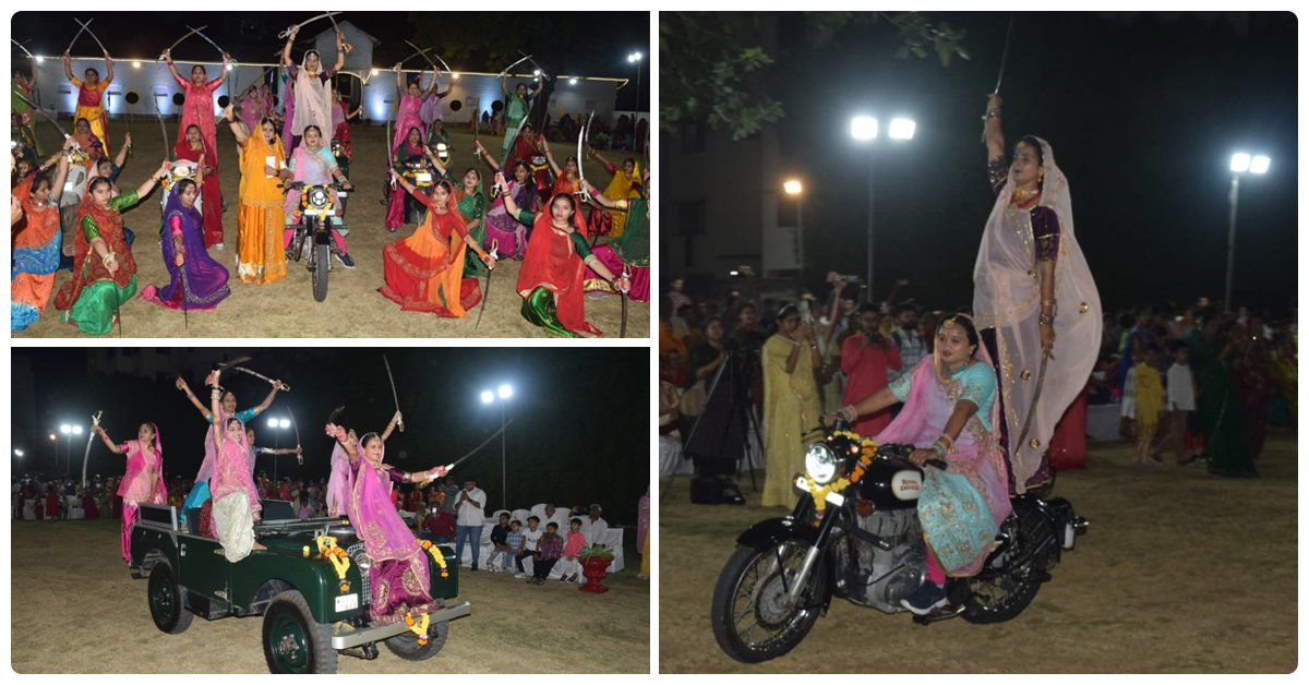 નવરાત્રિ નિમિત્તે દેશના દરેક ભાગમાં ગરબાનું આયોજન કરવામાં આવી રહ્યું છે. જેને લઈને લોકોમાં ભારે ઉત્સાહ જોવા મળી રહ્યો છે. દરમિયાન, ગુજરાતના રાજકોટના રાજવી પરિવારનો એક વીડિયો સોશિયલ મીડિયા પર સામે આવ્યો છે. જેમાં યુવતીઓ હાથમાં તલવાર લઈને બુલેટ, સ્કૂટર અને જીપમાં સવાર થઈને ગરબા રમી રહી છે.