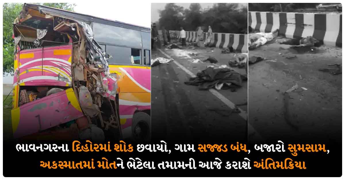 અકસ્માતમાં અવસાન પામેલા યાત્રીઓના મૃતદેહને આજે વતનમાં લાવવામાં આવશે. હાલ એમ્બ્યુલન્સ મારફતે મૃતદેહોને વતનમાં લાવવવામાં આવી રહ્યા છે. આ અકસ્માતમાં દિહોર ગામના 10 લોકોના મોત થયા છે. ભાવનગર શહેરની એક મહિલા અને દિહોરના અન્ય મૃતક યાત્રીઓની આજે વતનમાં અંતિમવીધી કરાશે. તમામ શબવાહીની થોડીવારમાં દિહોર ખાતે પહોંચશે. હાલ તો સમગ્ર દિહોર ગામમાં શોકનો માહોલ છવાયો છે.