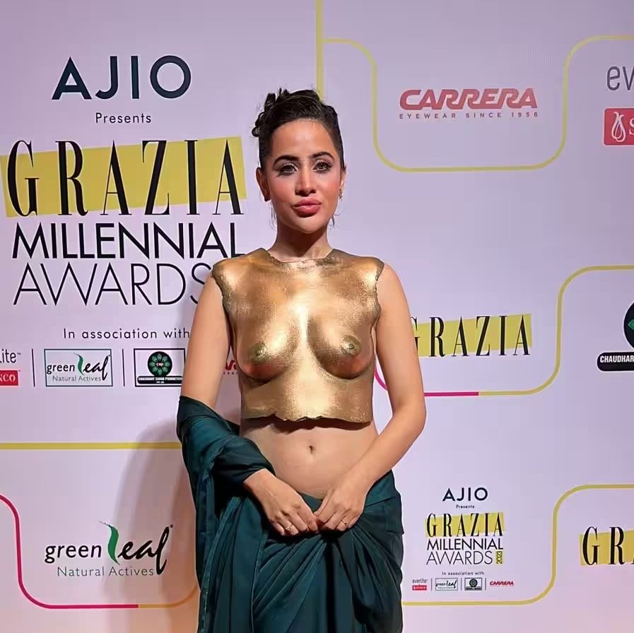 ઈન્ડસ્ટ્રીની ફેશન દિવા ઉર્ફી જાવેદ સોશિયલ મીડિયા પર ઘણી એક્ટિવ રહે છે. તે અવારનવાર ફેન્સ સાથે તેના નવા ફોટા અને વીડિયો શેર કરતી જોવા મળે છે. ઉર્ફી જાવેદ પોતાની અસામાન્ય ફેશન સેન્સથી લોકોના મનને હલાવી દે છે, જેના કારણે તેને ઘણી વખત ટ્રોલીંગનો સામનો કરવો પડે છે. હવે તાજેતરમાં, ઉર્ફી જાવેદે અઝીઓના ગ્રાઝિયા મિલેનિયલ એવોર્ડમાં હાજરી આપી હતી. આ દરમિયાન તેનો લુક જોઈને લોકો ચોંકી ગયા હતા. વાસ્તવમાં આ વખતે ઉર્ફીએ તેનો અત્યાર સુધીનો સૌથી બોલ્ડ આઉટફિટ પહેર્યો છે.